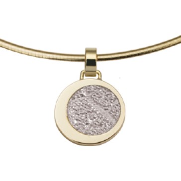 The Precious is a round pendant of about 16 mm with an asymmetric edge, which can be provided with a footprint.
