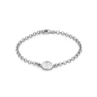 Bliss round is a 4mm wide and 18cm long bracelet, with 12mm circle with fingerprint